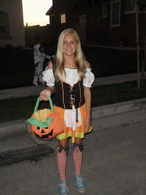 What a crazy looking bunch! Bryce was totally in to being something scary this year...almost had to say no...but he is kind of outgrowing the little costumes! Kenadee wanted to be this cute candy corn witch. She looked adorable, perfect for her. And baby girl choose this cute little cat costume. Bill is like a big kid and insisted on wearing the scary thing and scared many children during the night. There were a few puddles left on my doorstep this night. All good clean fun...we went with a bunch of the neighbors and grandma and pa came with us too and walked around all the new developments. It was a lot fun....figured out that I need 5x the candy I bought to hand out. So many darn kids in our neighborhood...which is actually a good thing! So it was a fun night...all the kiddos were happy (including Bill).